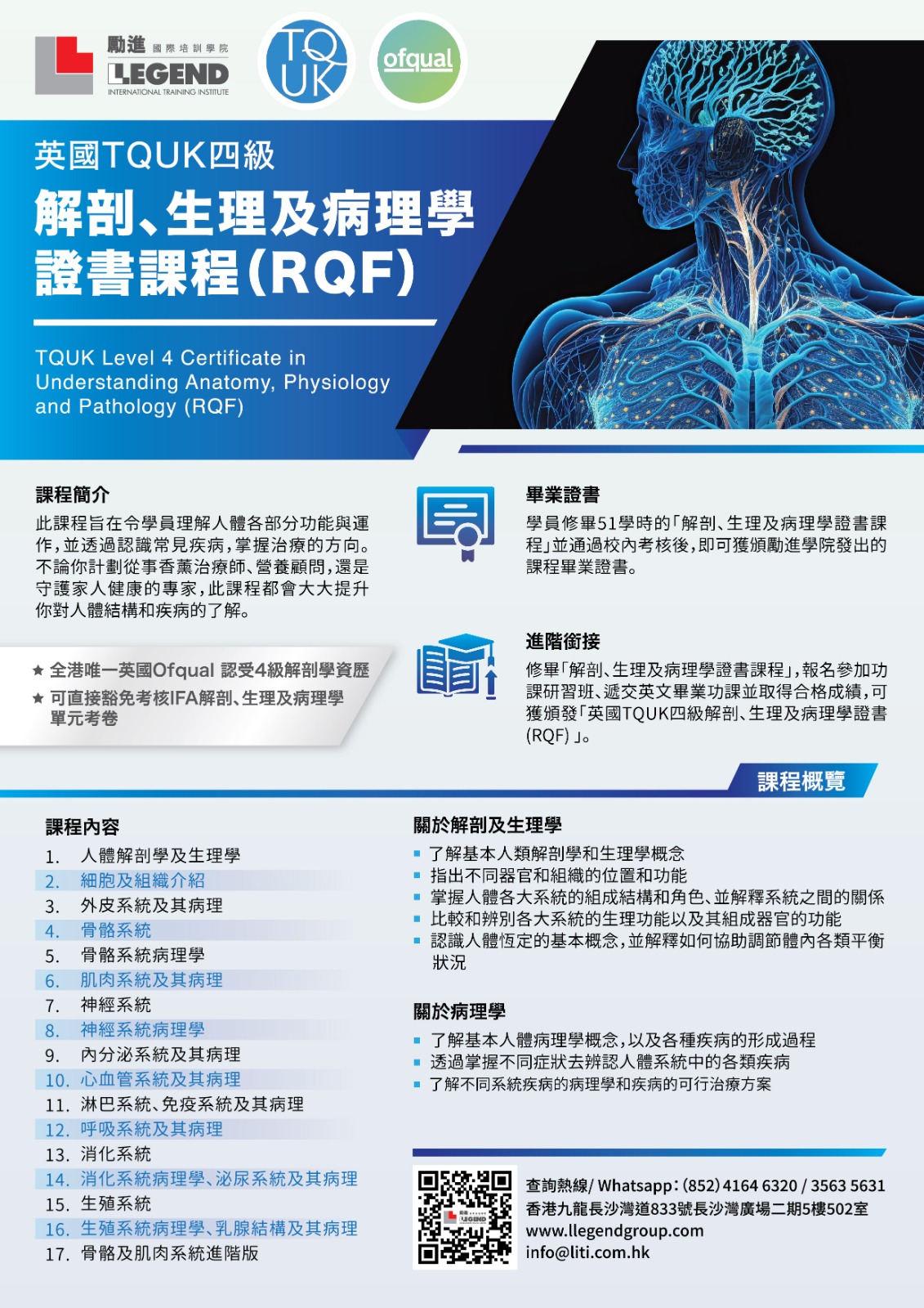英國 TQUK 資歷架構四級解剖、生理及病理學證書 (RQF)